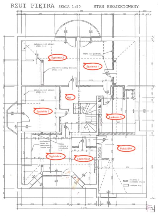 | sypialnia 1 | 5,3m x 4,3m = 22,9m2 |